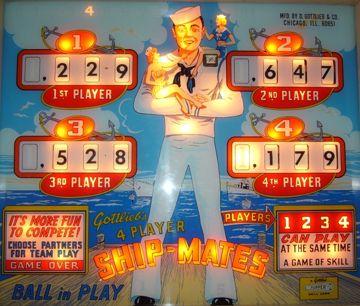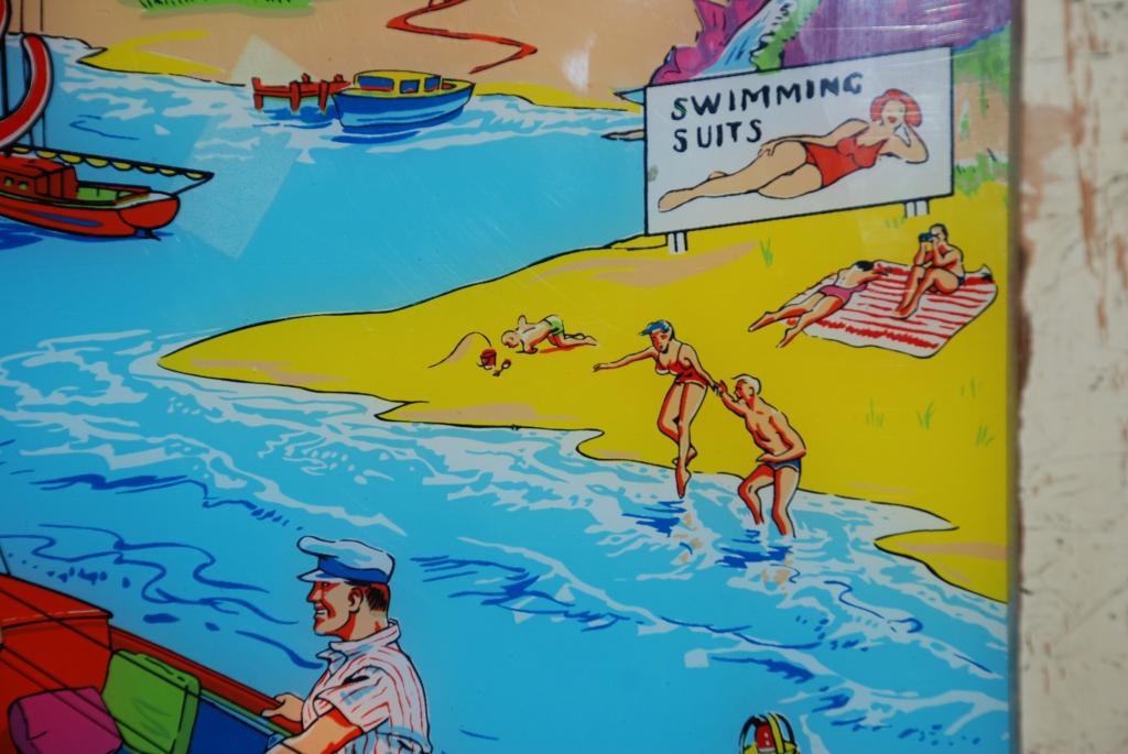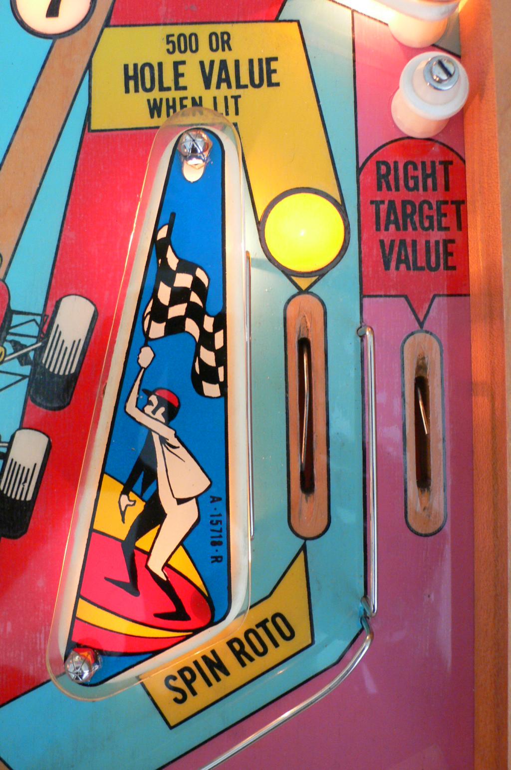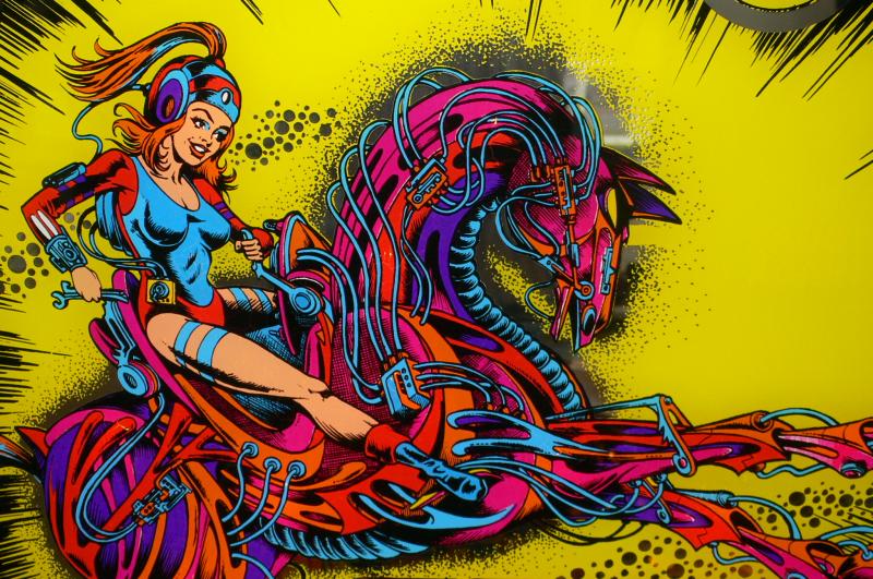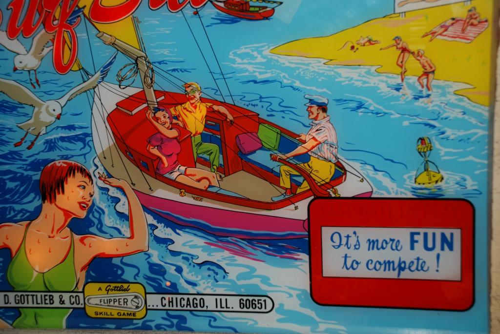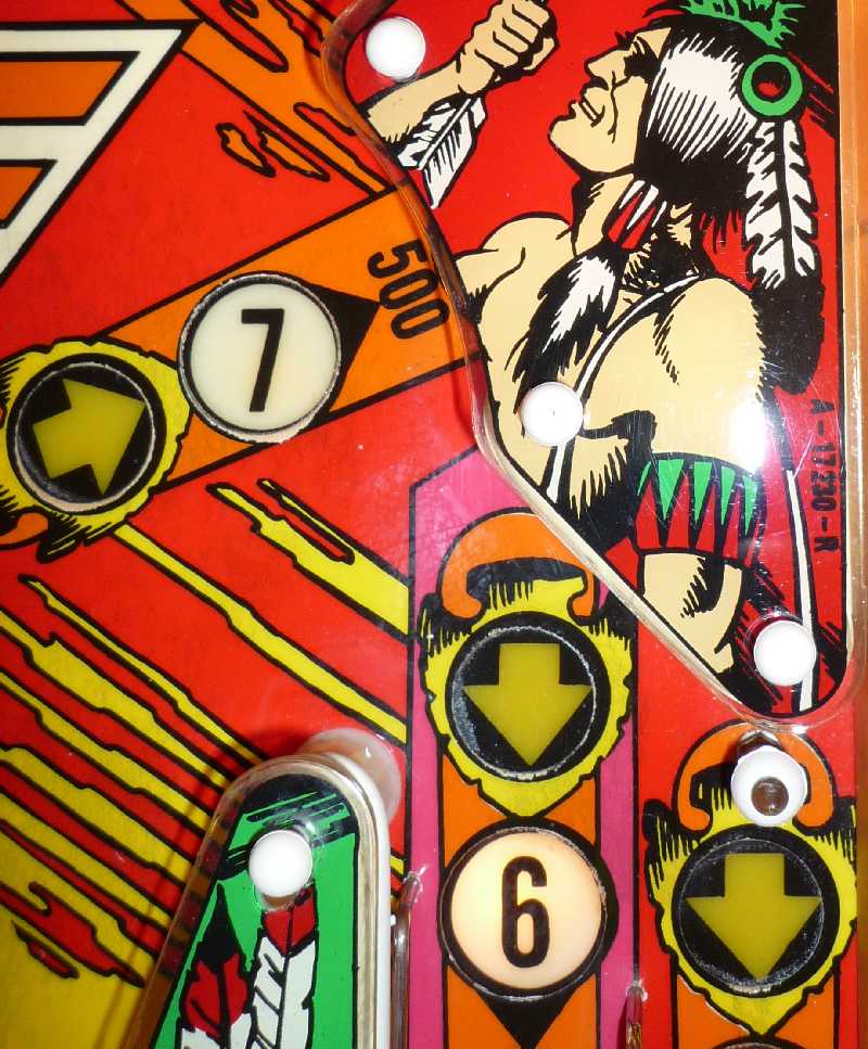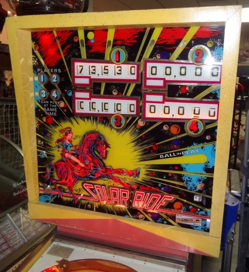 Il faudrait le demander à l’auteur de cette glace frontale que certains trouveront psychédélique et géniale, mais que pour ma part je trouve à chier…mais, bon, vous connaissez le proverbe : « les goûts et les couleurs… ». La seule chose que je note sur cette glace est qu’il manque le compteur des dizaines de milliers de points par rapport aux flippers qui vont suivre dans cette décennie.