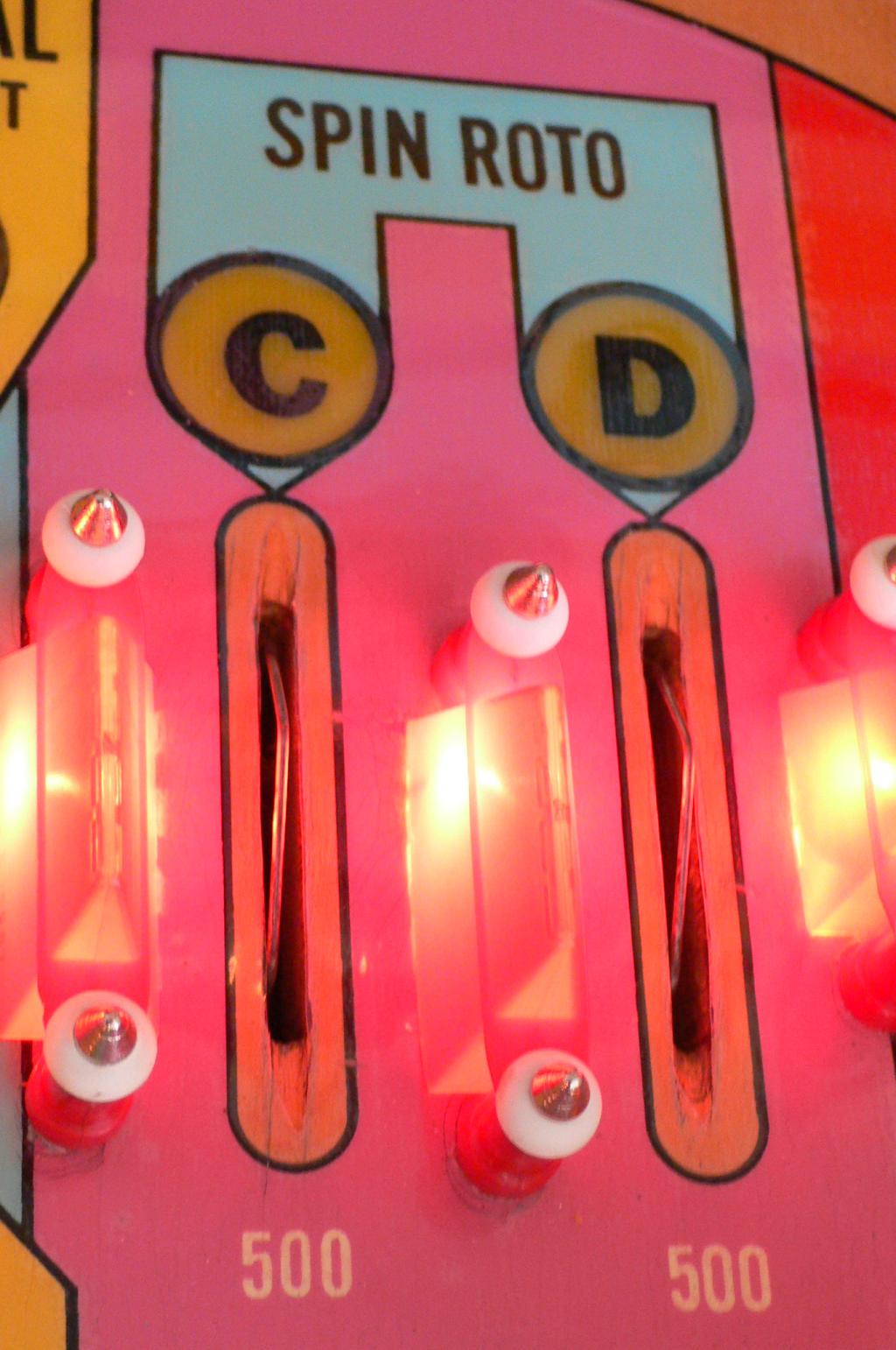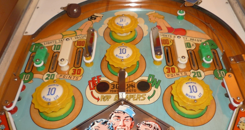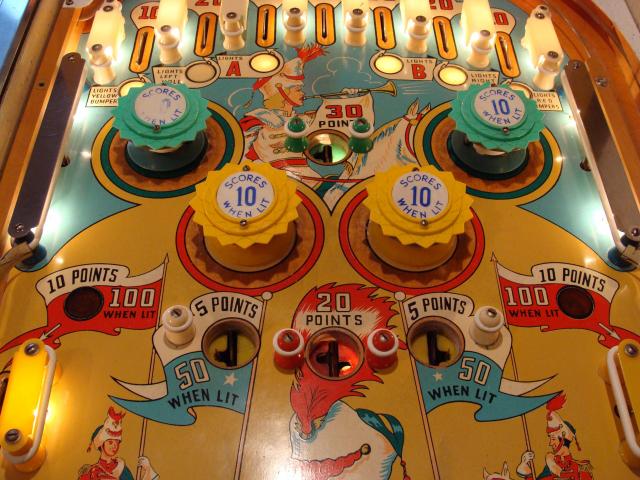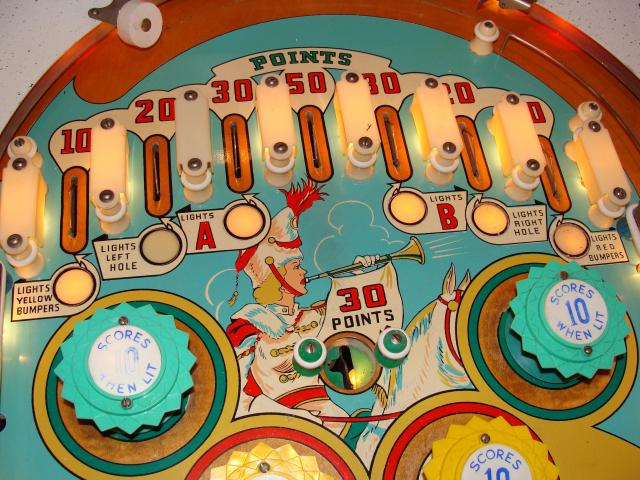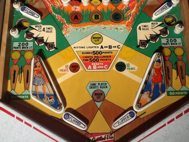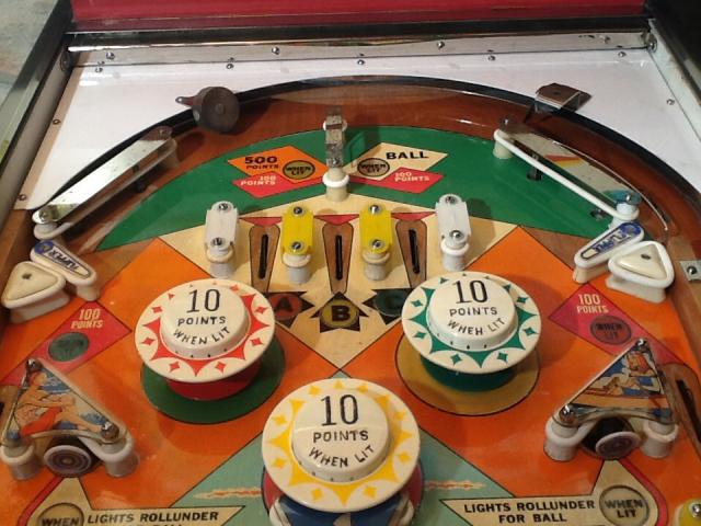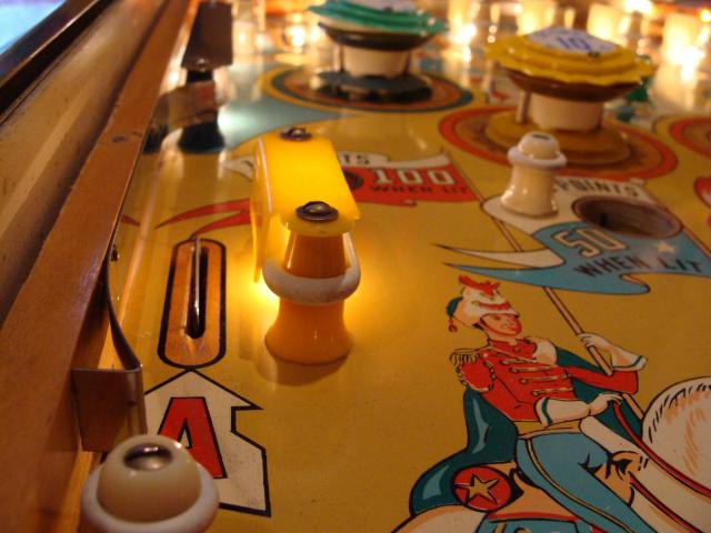 La bille débouche sur le classique trois couloirs/trois bumpers cher à Gottlieb. Le bumper central donne 1 000 points, les autres, 100. Les couloirs A-B-C donnent le 2 X bonus (4 X en 3ème bille).