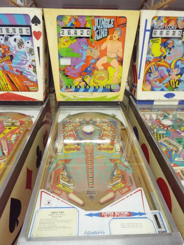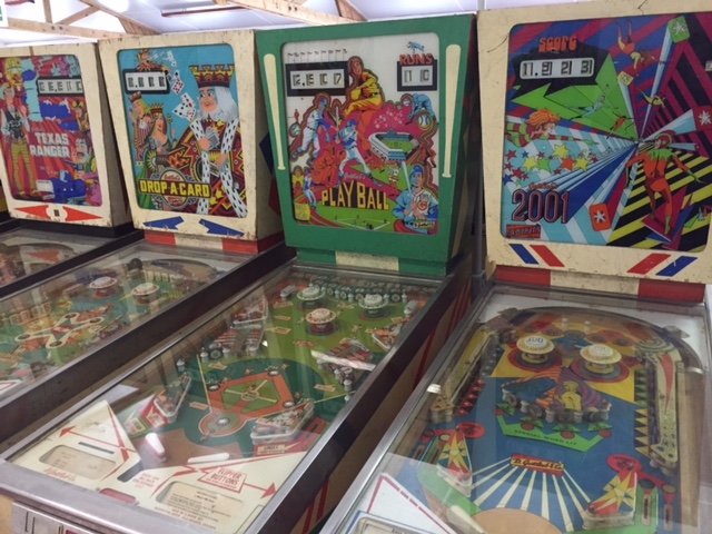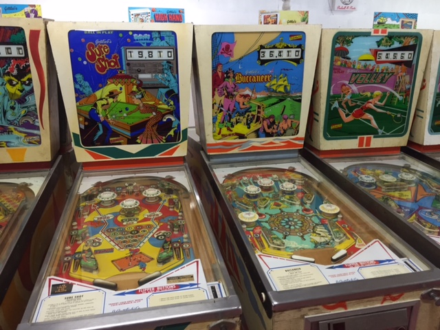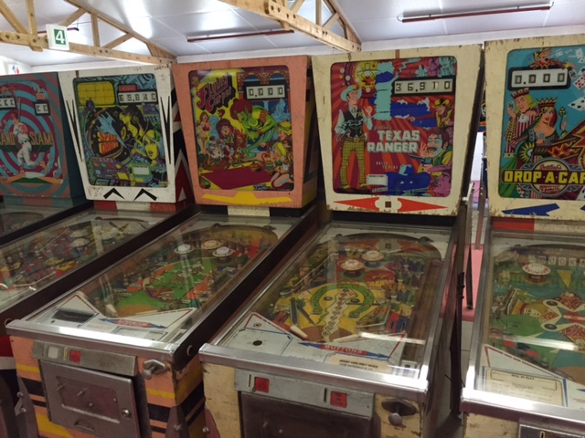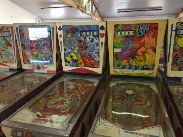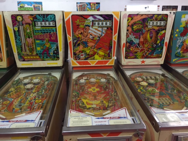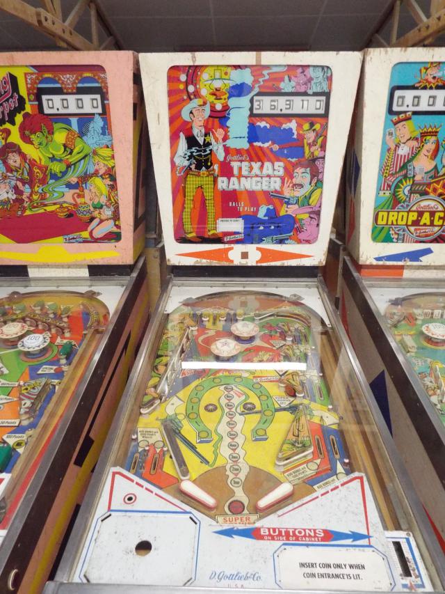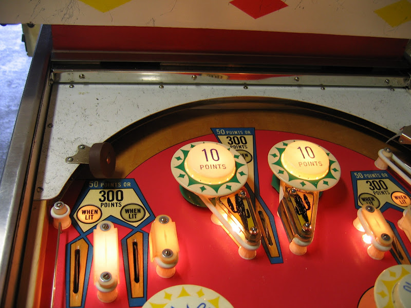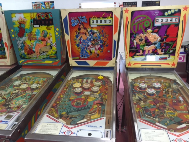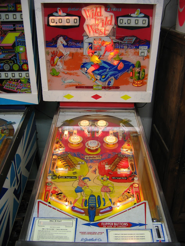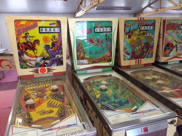 En partant du bas, entre les flippers automatiques, eux même décorés par des cactus,