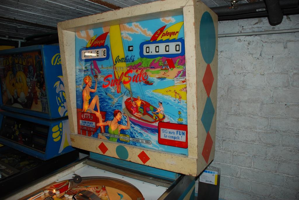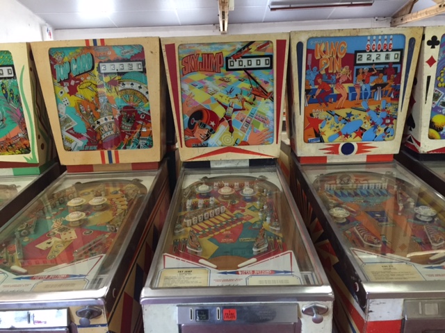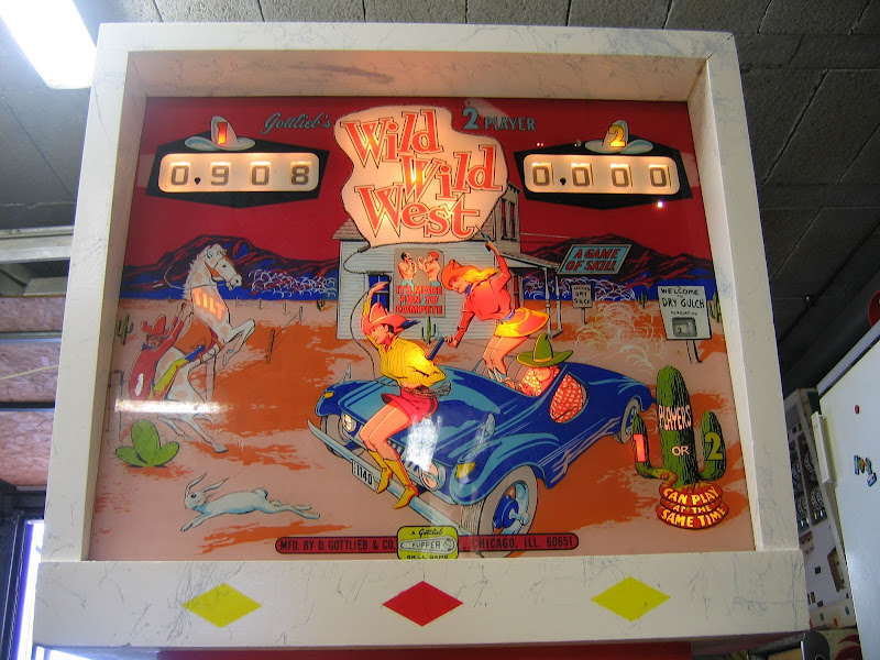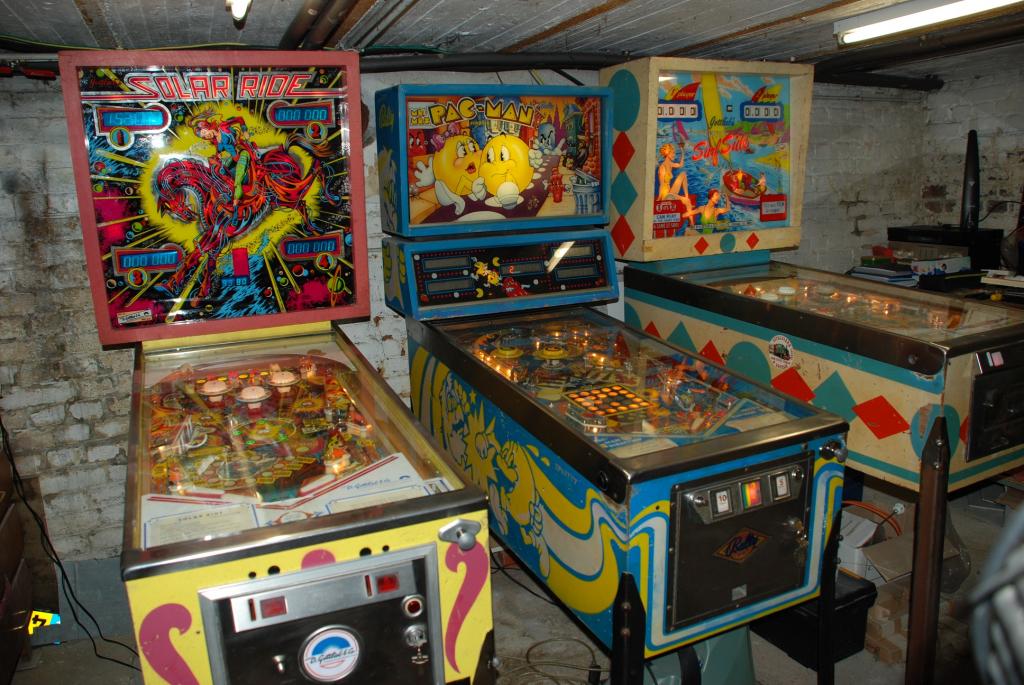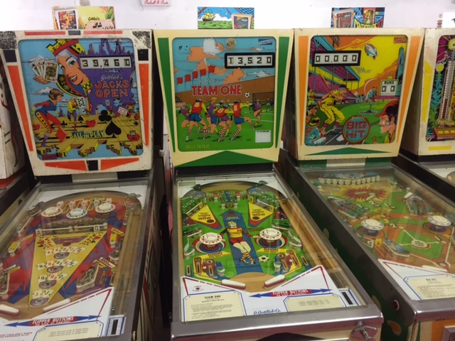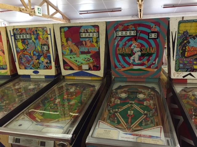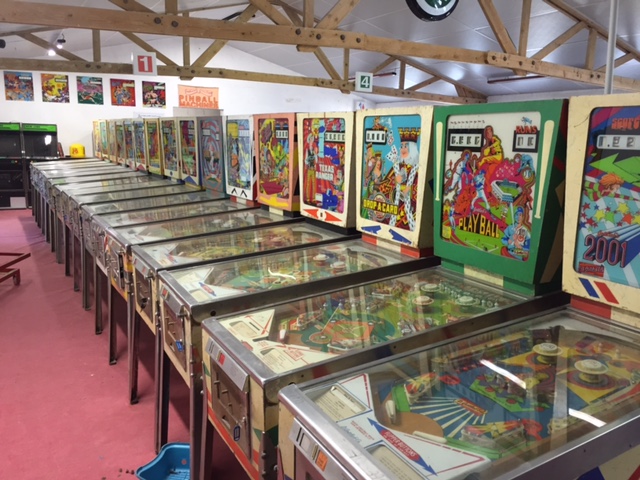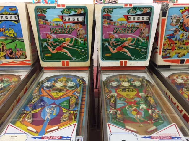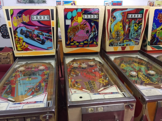En partant du bas, entre les flippers automatiques, eux même décorés par des cactus,