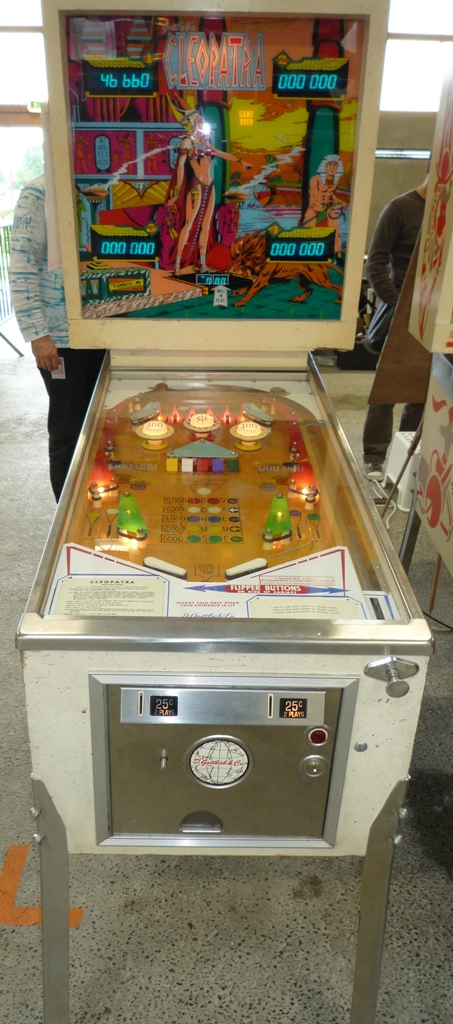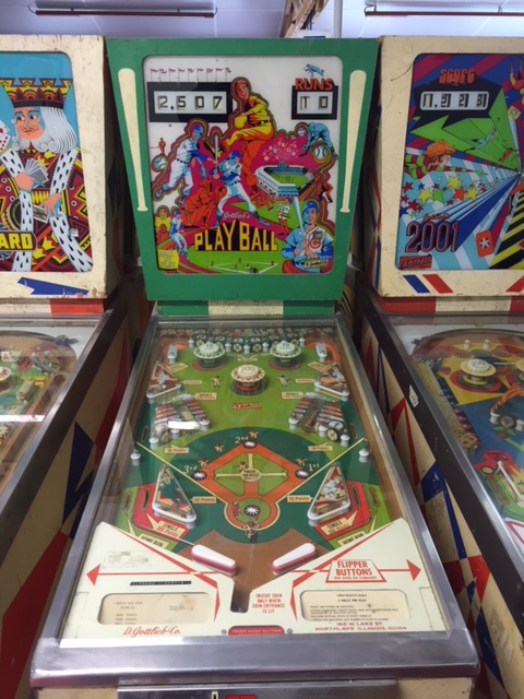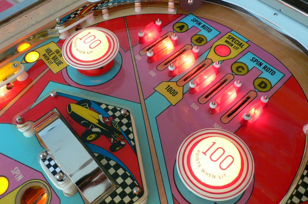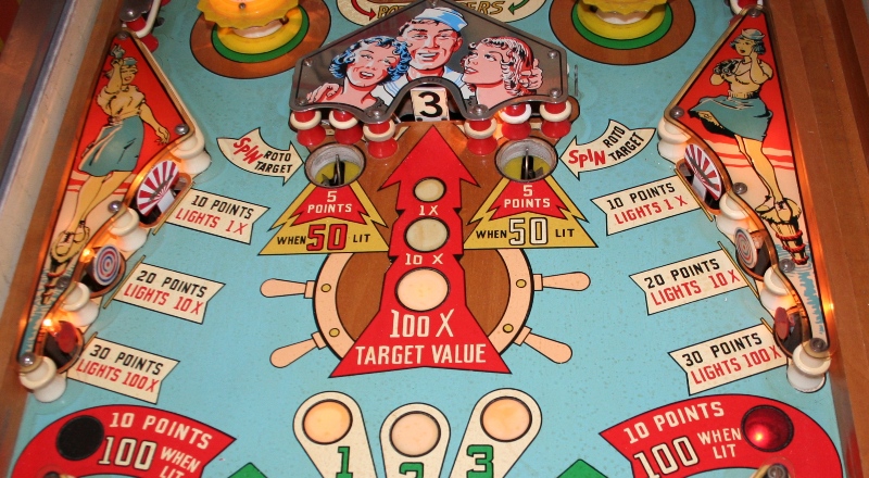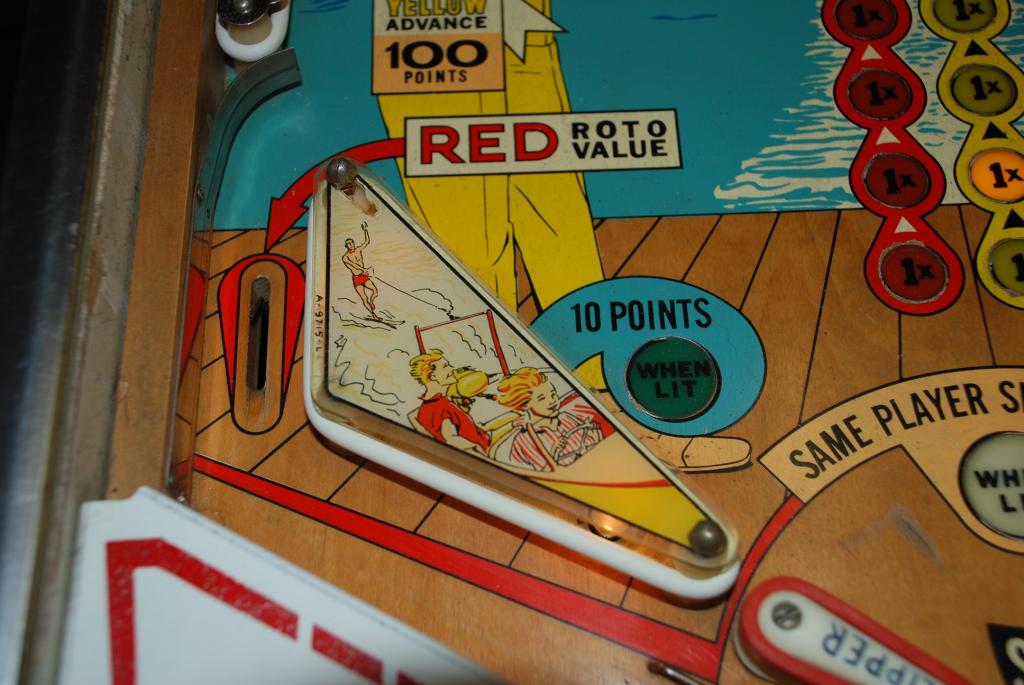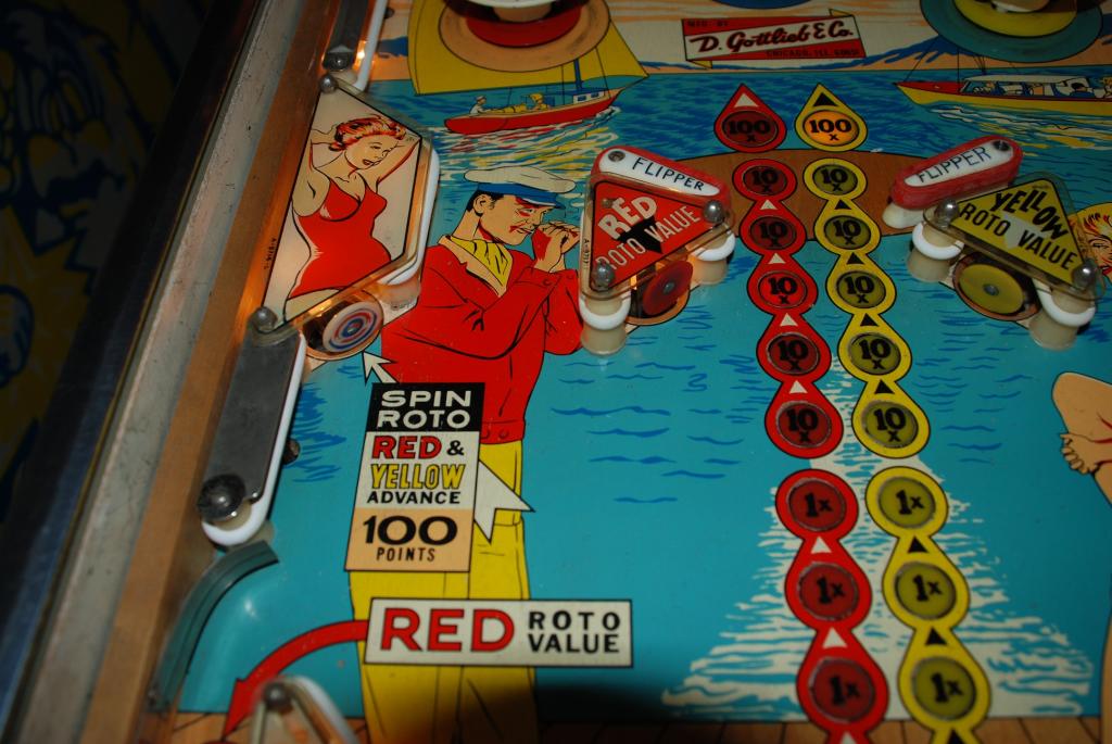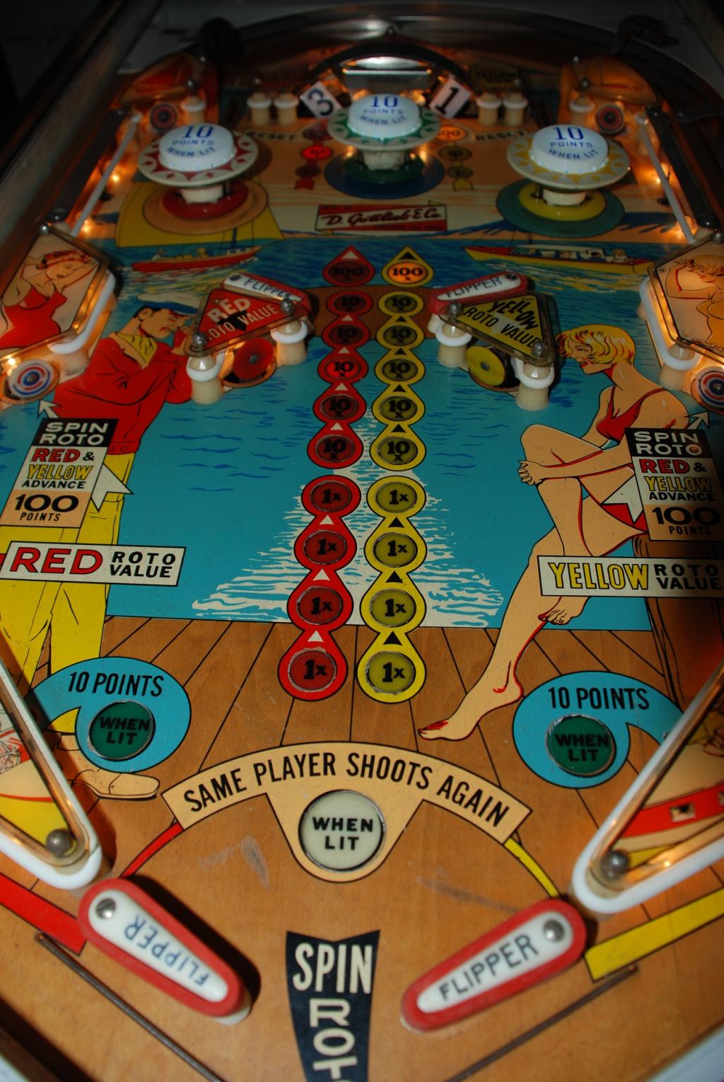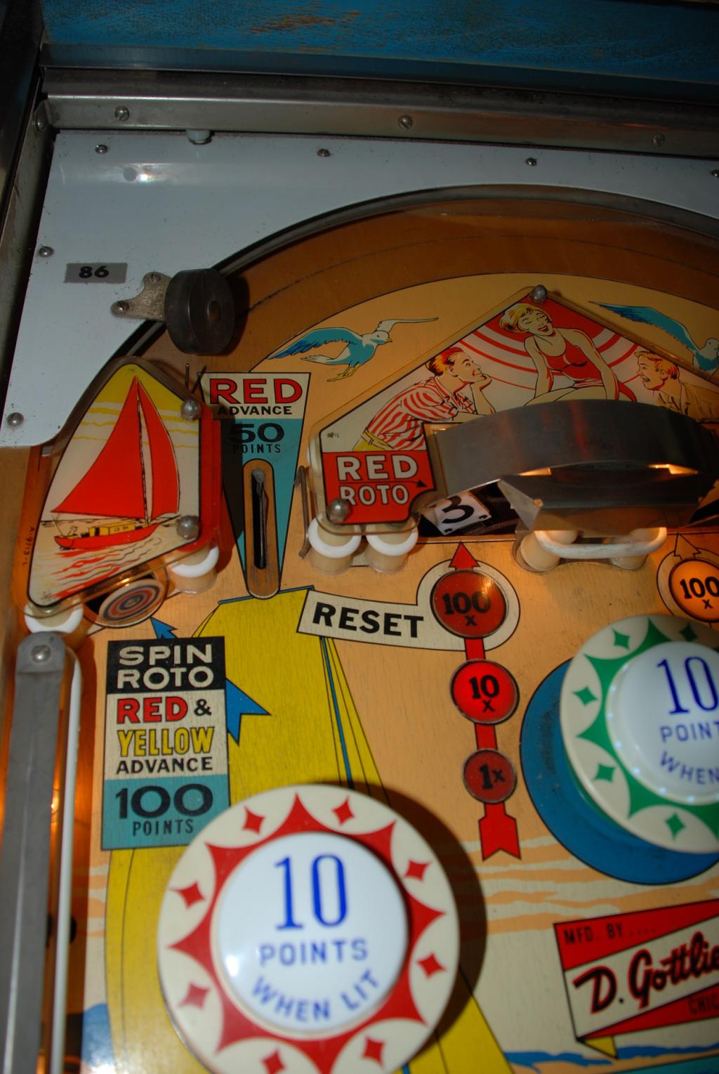 Une bonne partie des derniers flippers électromécaniques fut exportée en Amérique du Sud, le jeu que je vous présente arrive tout droit du Chili; la planche de fond estampillée « Chile » en témoigne.