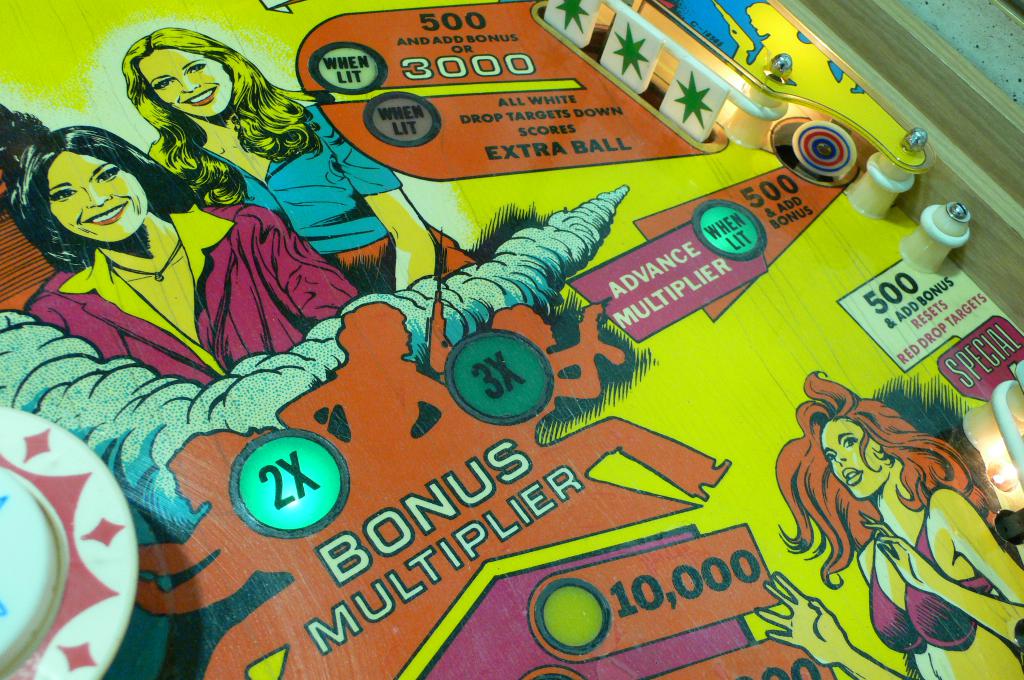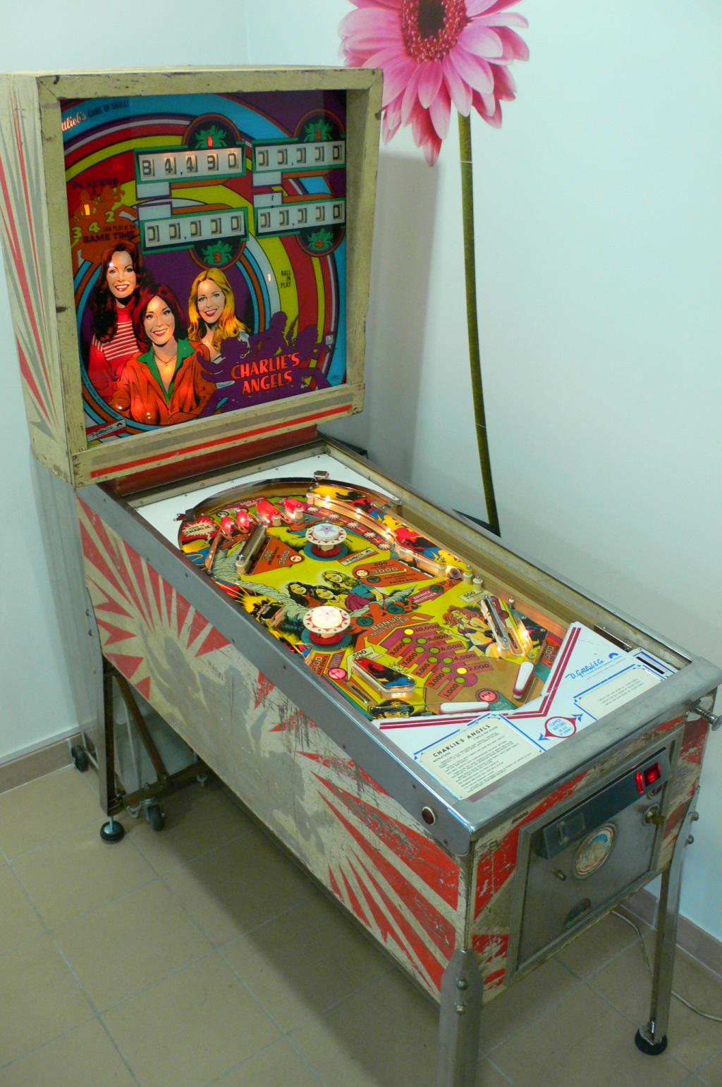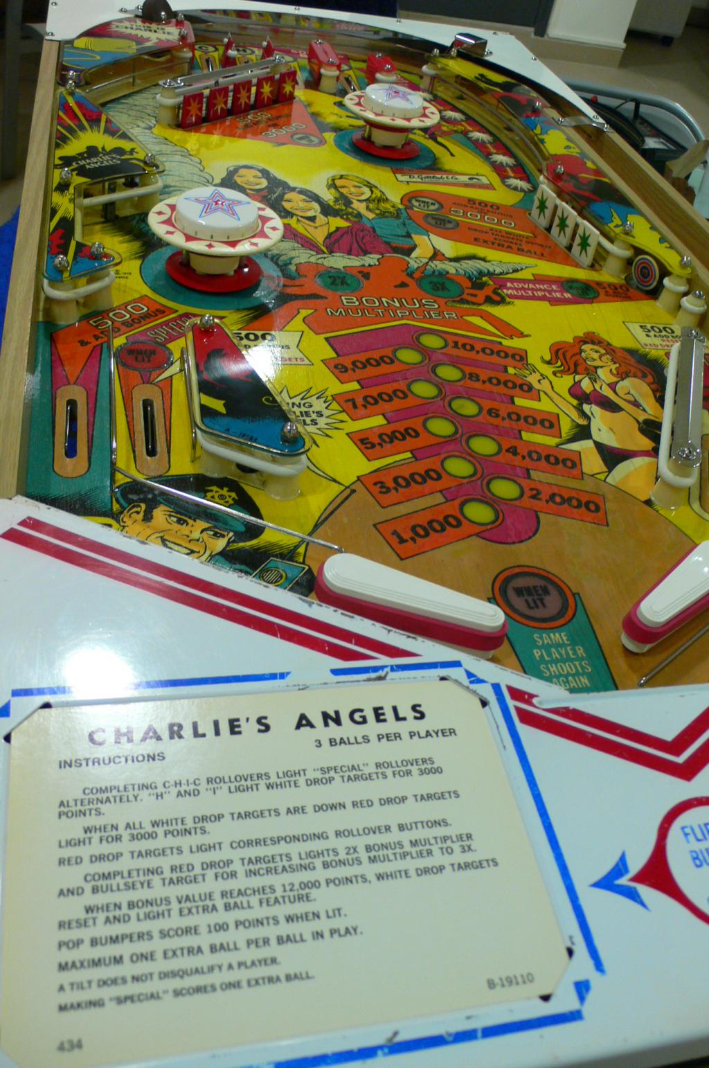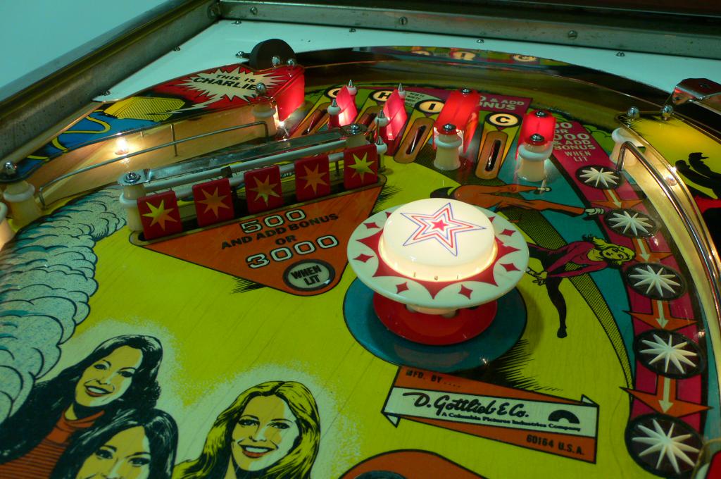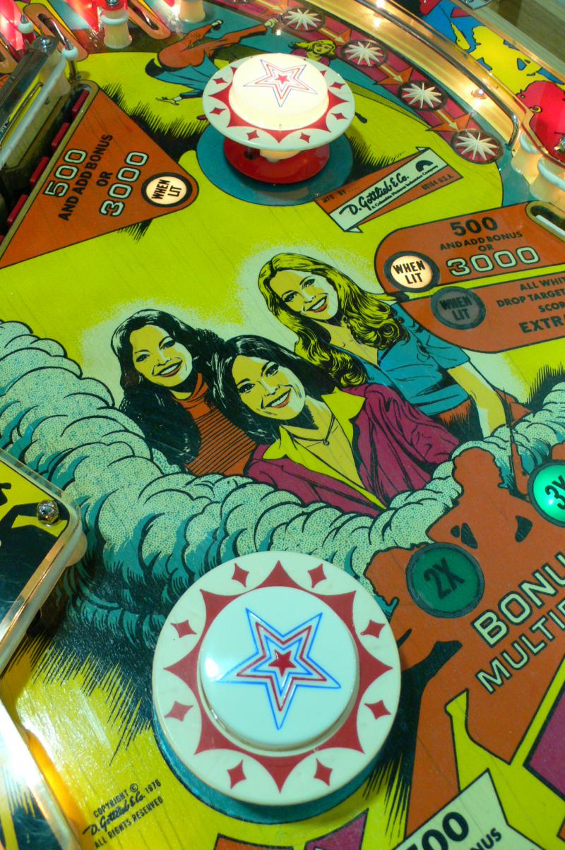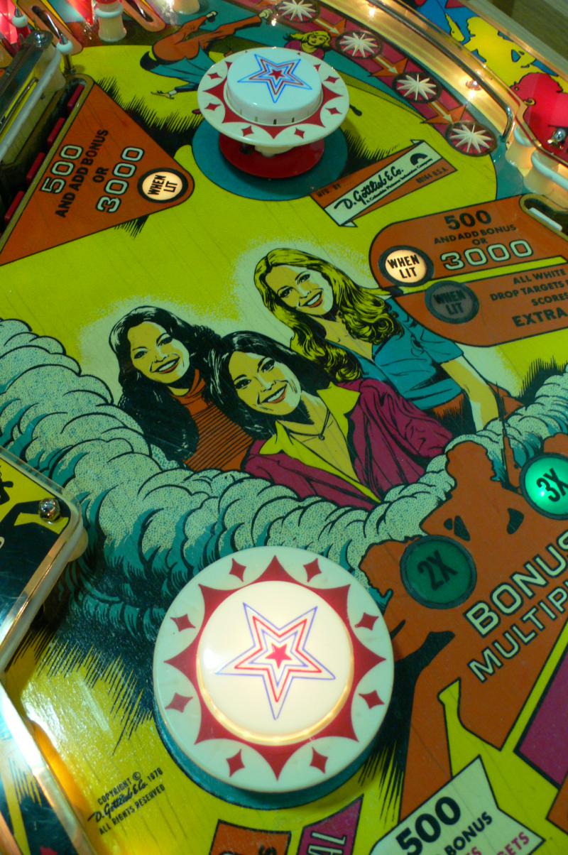 Tiré de la célèbre série télévisée « Drôle de Dames » dans sa version Française, le Charlie’s Angels est le DERNIER jeu électromécanique en 4 joueurs diffusé par la firme Gottlieb.