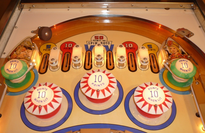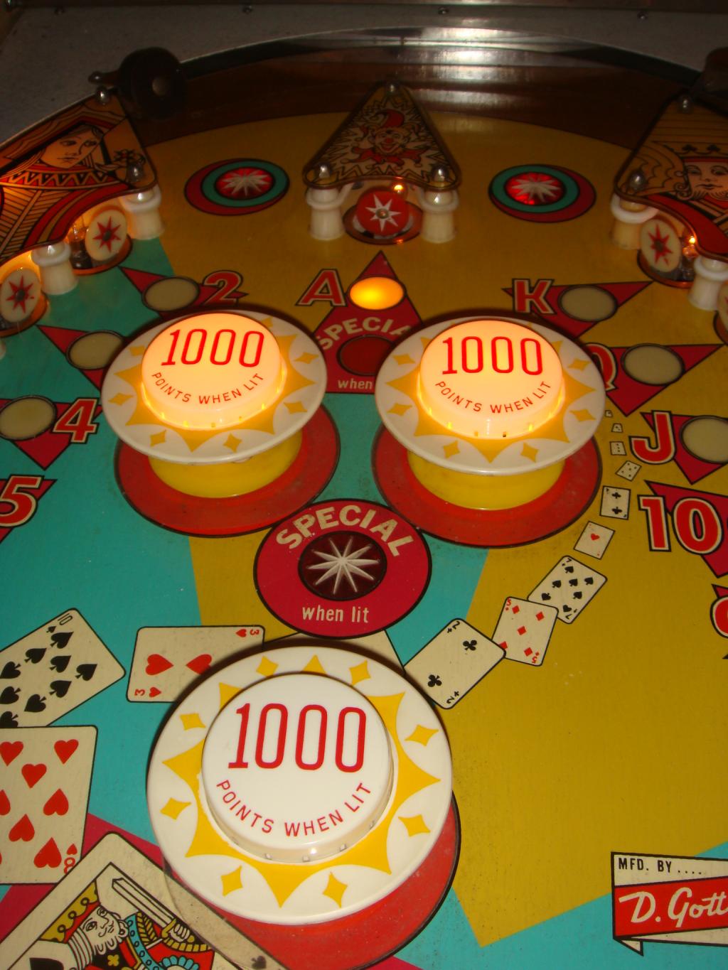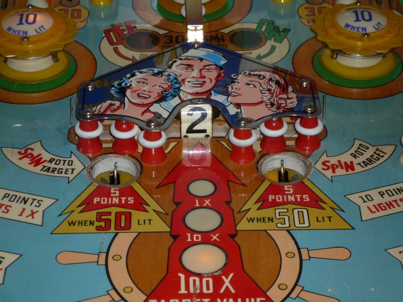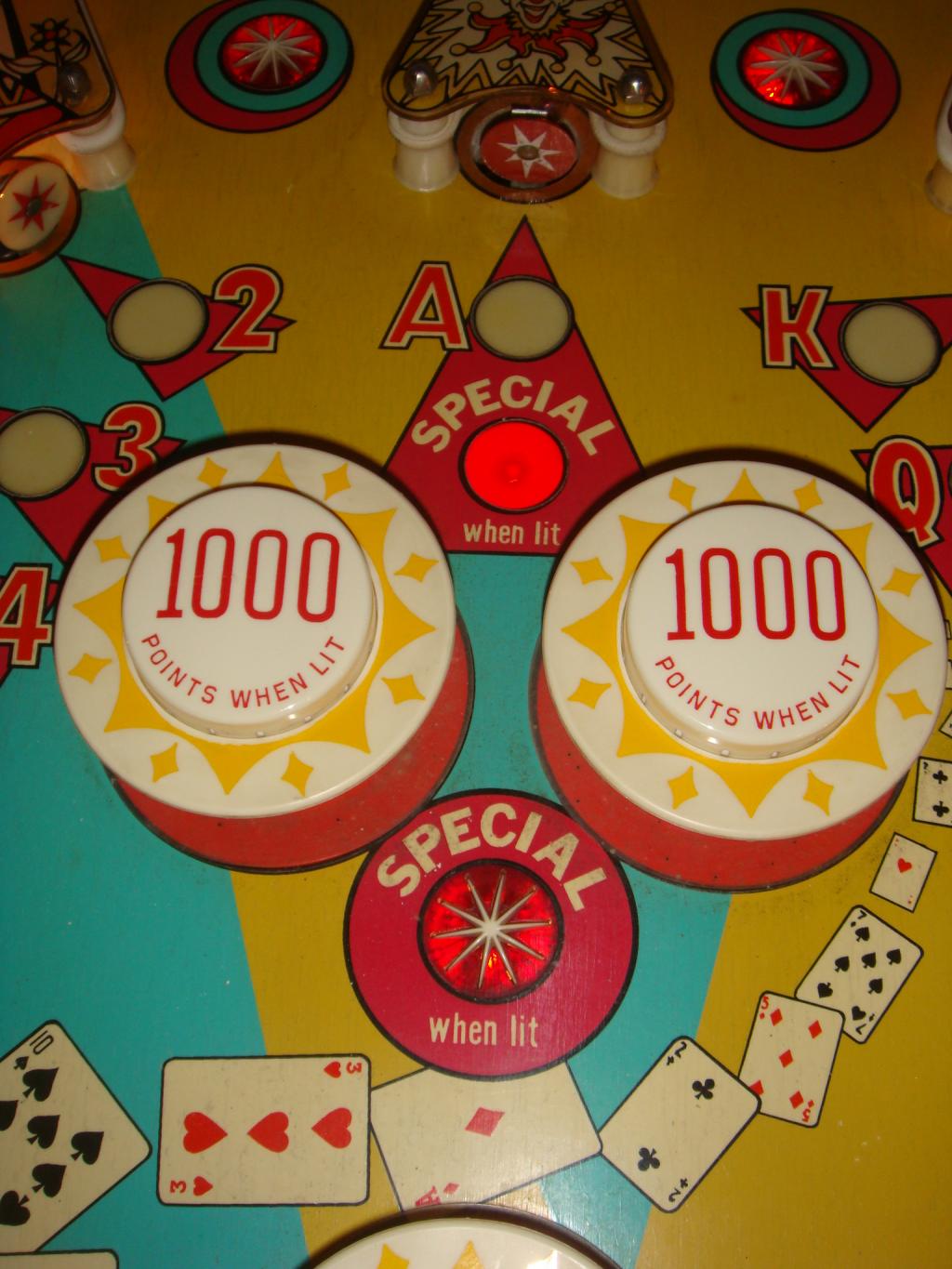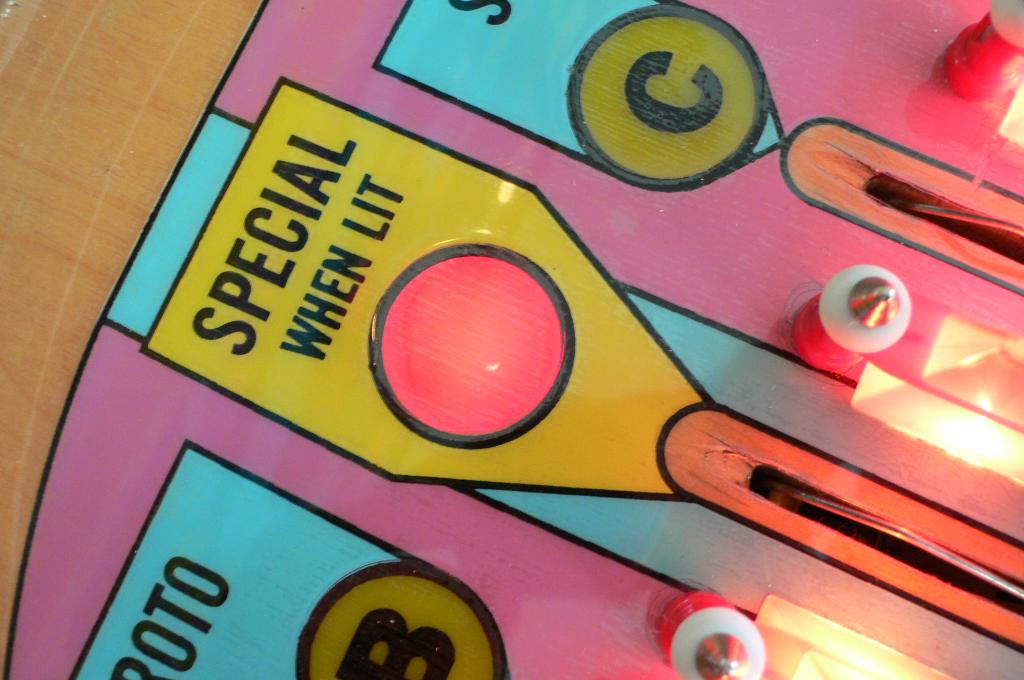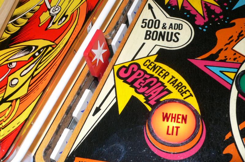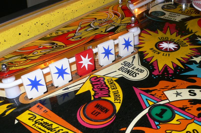 Lorsque la rangée de 10 cibles est abattue, les 10 drop targets remontent, donnent le spécial et le point lumineux à 5000 points est remplacé par le spécial, qu’il est particulièrement excitant de viser, d’autant plus qu’il vaut mieux viser avant de tirer car toute cible abattue ne remontera de nouveau qu’une fois la rangée complète de nouveau abattue.