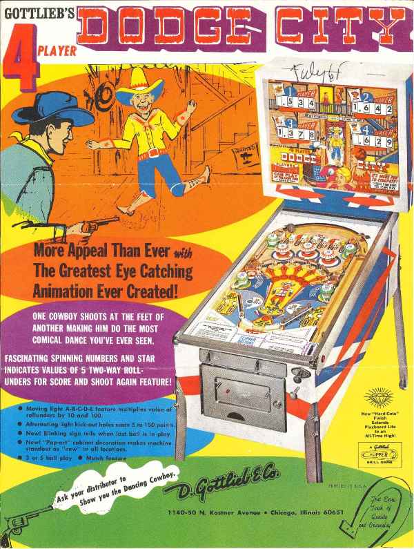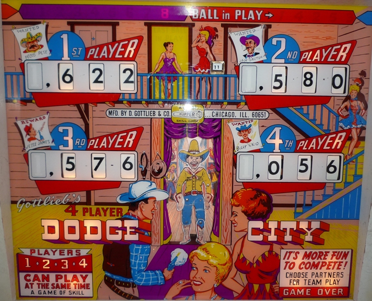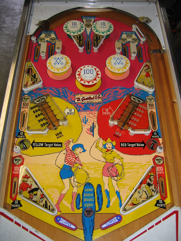 Le nombre d’exemplaires produits est flatteur et j’ai du mal à croire que ce jeu ait fait un tabac en exploitation, coincé entre le Canada Dry, et le Jungle Queen, alors que des Fast Draw et des Royal Flush ont fait des carrières assez longues et étaient encore en exploitation lors de la sortie du Bronco. Il est vrai que la marque Gottlieb était très porteuse et que chaque modèle était acheté avec enthousiasme, d’où le nombre d’exemplaires produits, mais ont-ils tous été vendus ?