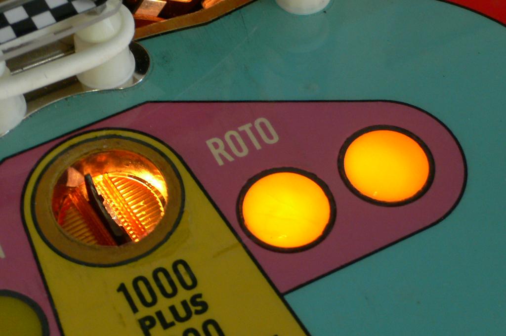 Les bumpers ? 100 points « when lit ». Contrairement à nombre de flippers de cette décennie dans laquelle les cabochons de bumper présentent cette mention souvent inutile, ici, il faut allumer les bumpers en tapant dans les cibles fixes sur les côtés de ceux-ci. Le bumper s’allume alors jusqu’à ce que la cible soit de nouveau heurtée.