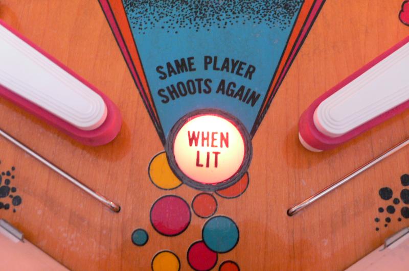 Gottlieb nous refait le coup du Magnotron avec ses couloirs latéraux semi ouverts. C’est là qu’on y pioche l’extra-ball, la plupart du temps plus par coup de bol que par adresse.