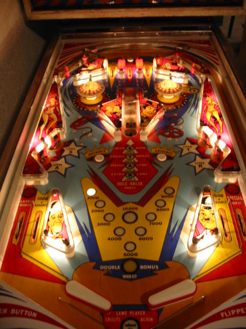 Après quelques jeux sortie au début des années 50 et n’ayant pas vraiment convaincu la marque plus habituée à sortir des jeux de baseball se lance une dernière fois dans les flippers, avec deux modèles le show boat et le fun fair que voici.