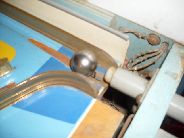 la bille au repos maintenue juste par une tige relevée (mea culpa, là aussi c'est un relais de type gottlibien qui se charge de ce travail) donc le lanceur ne peut pas la toucher