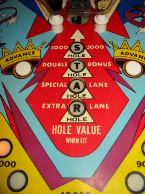 Soit éteindre trois fois le rack complet des 15 boules durant la même bille de jeu, soit éteindre une seule fois le rack mais en éteignant la dernière boule seulement quand l’étoile est allumée. inutile de vous dire que c’est très dur  à réaliser. Même en augmentant au maximum la fréquence d’obtention de l’étoile qui apparait et disparait en fonction des touches sur les slingshots qui eux, secondent très bien les deux flippers. Flippers qui sont de grande taille, on est au tout début de ce genre d’accessoire à cette époque.
