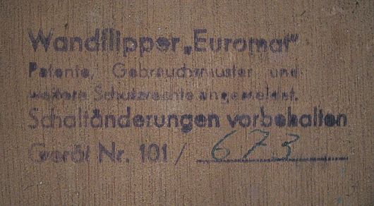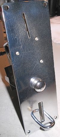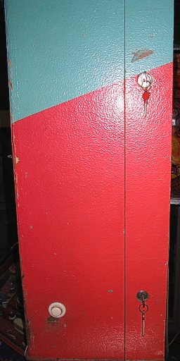 L'arrière du flip avec le trou de l'emplacement de la serrure qui débloque la planche à glissière sous le flip, qui sert à accéder à la caisse et à la mécanique (placée à l'avant sur le 421).