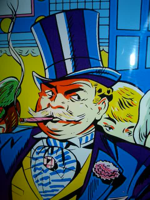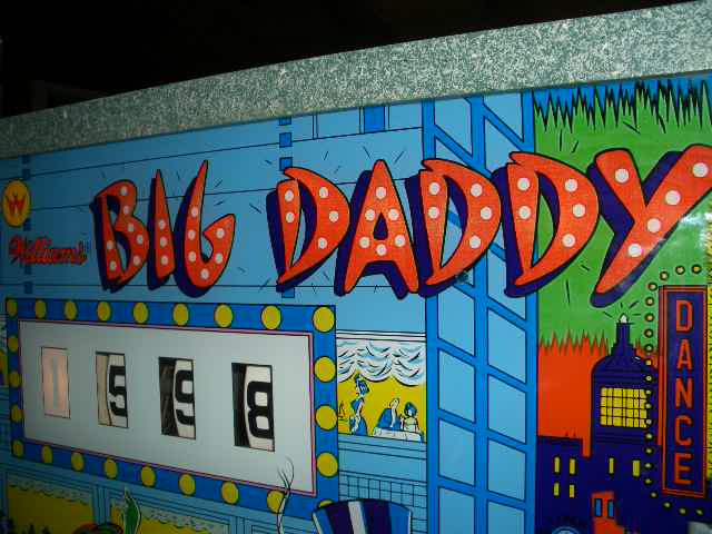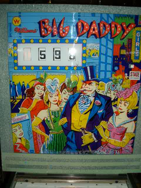 euh, non, allez, je plaisante - j'ai retrouvé le bouton 'couleur' et je continuerai donc en couleur. Ce flip a été récupéré par un pote que j'ai infecté avec le virus flippernaticus mordicus fatalum et qui en 2 ans a cumulé une bonne triplette de douzaines de flips mécas et dont voici le très beau 1 joueur 'Big Daddy' - un Williams svp. L'infecté s'étant enregistré, c'est le dénommé Chrisfly! Lle 'Vagabond' de chez Williams a été le premier flip avec 'drop target' et que le Big Daddy ayant aussi une drop target, est donc probablement le 2me flip à 'drop target', et la voici donc