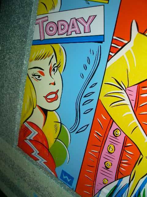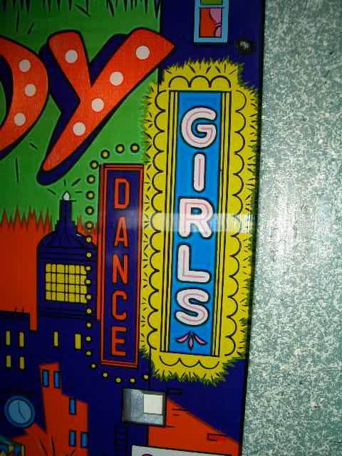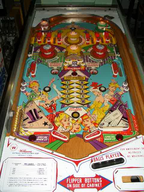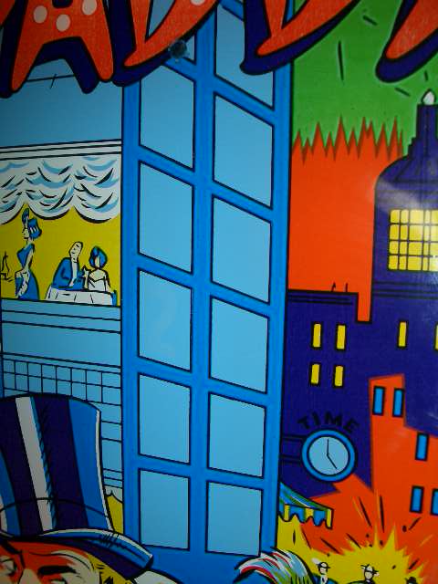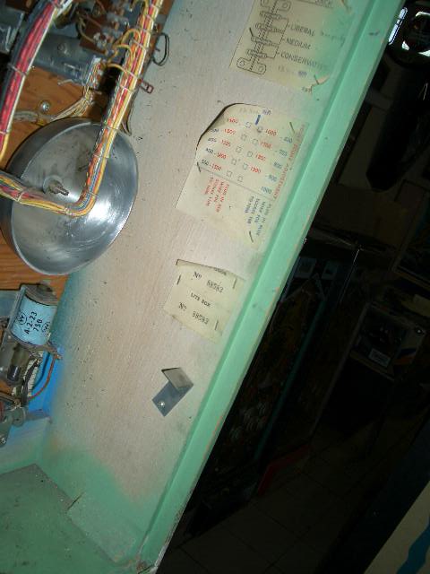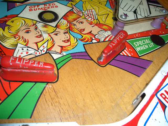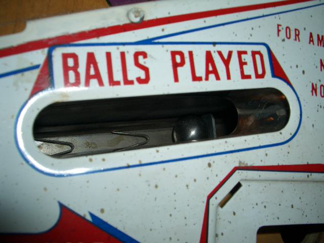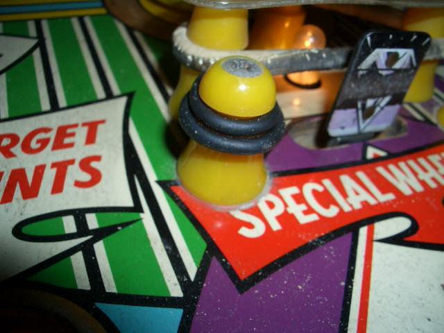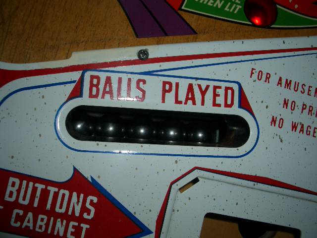 Illogiques, en effet, car il est hautement improbable que la peinture ait été faite APRÈS la fixation de certains éléments - après recherches, il s'est avéré que le jeu avait été soumis à une cure de jouvance, très bien faite dailleurs, non pas en original, mais néanmoins en application très 'typique époque' . Je passe sur les détails du nettoyage etc, ayant moi-même été que consultant et photographe - ici 5 nouvelles billes qui comme il était d'usage sur les flips de cette époque, étaient stockées sous l'apron et visibles d'en haut